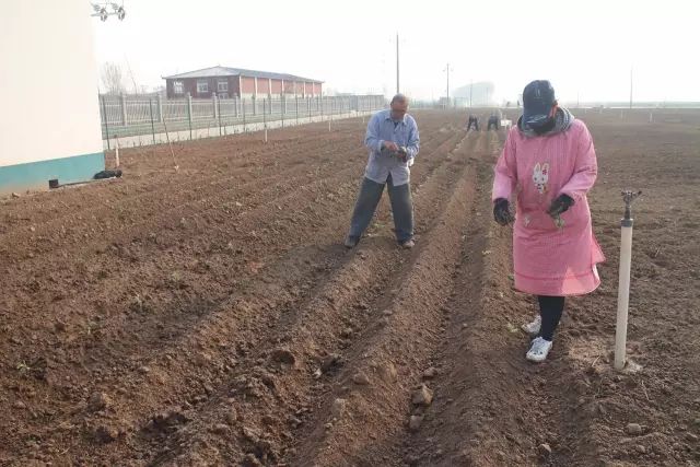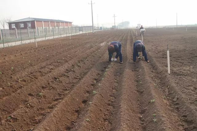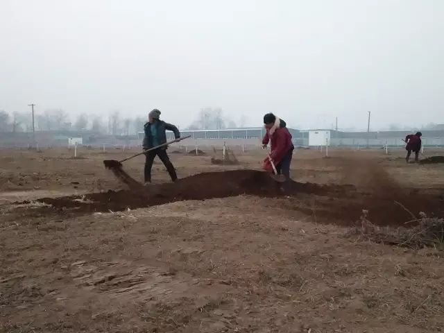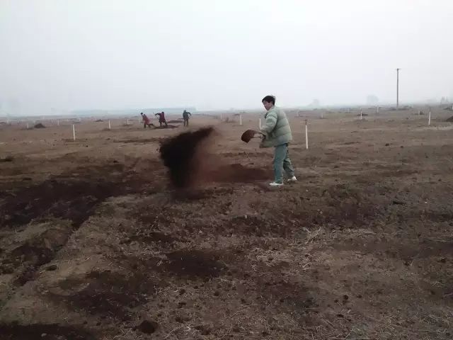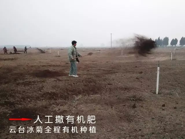 云臺冰菊基地人工施撒有機(jī)肥。