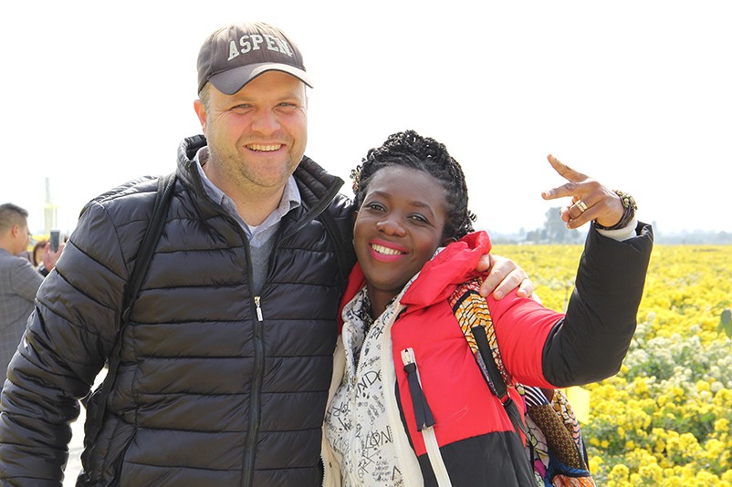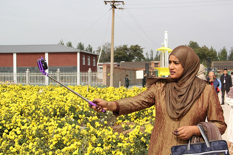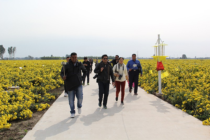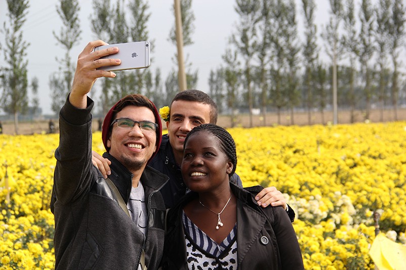 這也在拍,那也在拍,看來(lái)這些外國(guó)專家對(duì)咱們的云臺(tái)冰菊很有興趣么~各類膚色的人聚在一起共同賞菊品菊,場(chǎng)面和諧極了,看來(lái)不僅藝術(shù)能促進(jìn)各國(guó)間的文化交流,農(nóng)業(yè)照樣有聚集人心的魅力??!